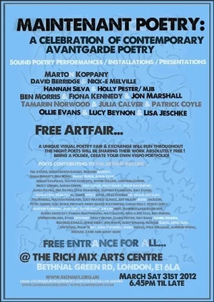 Enemies: a celebration of contemporary avant-garde poetry - March 31st 2012 at the Rich Mix Arts Centre