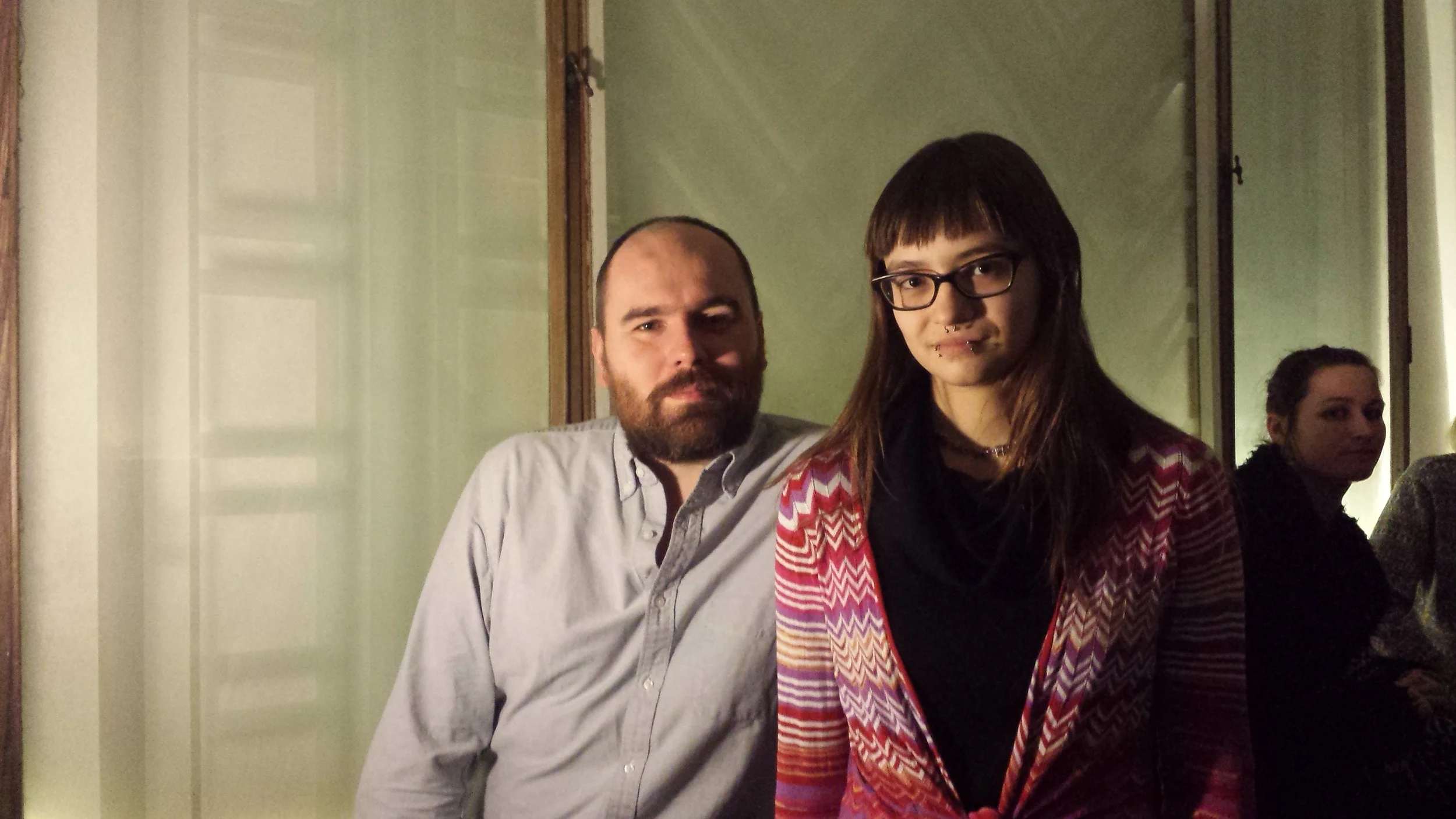 Cali Dux & Simon Pomery Camarade poetry at Interrobang bookfair - Simon Pomery & Cali Dux